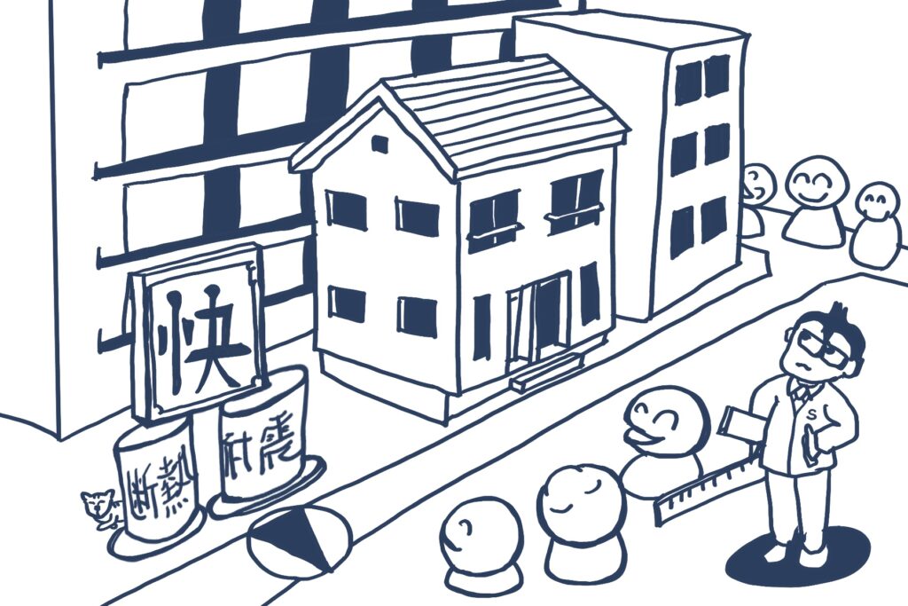 今回のケースは稀なことではなく、日本全国どこの商圏でもありうる話なのです。便利な場所だが、狭小、前面道路が狭いなど、大手ゼネコンやデベロッパーが手を出しにくい土地がまだまだ存在しています。小さな駐車場や自転車置き場、古い住まいや空店舗などになっており、それらの土地をもっとイキイキさせるのは、木造建築を手掛けている我々しかないと思うのです。木造建築を施工する工務店様も、新築住宅一本ではなく、土地を生かすためのノウハウを持ちたいものです。ぜひとも、「笑顔デザイナー」にご相談ください、一緒にそれらの土地に関するマーケティング調査をして木造建築を提案していきましょう。